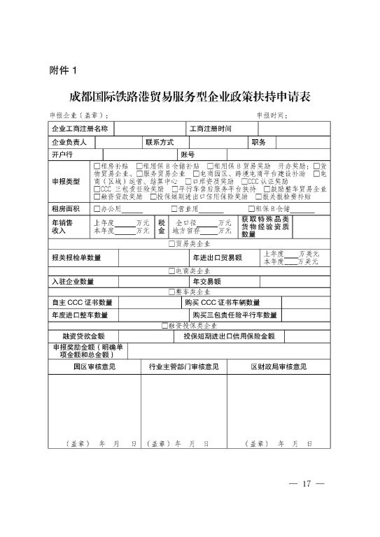 青商务投促〔2017〕14号 《大力实施“蓉欧+”战略促进成都国际铁路港贸易服务型企业发展若干政策实施细则》的通知